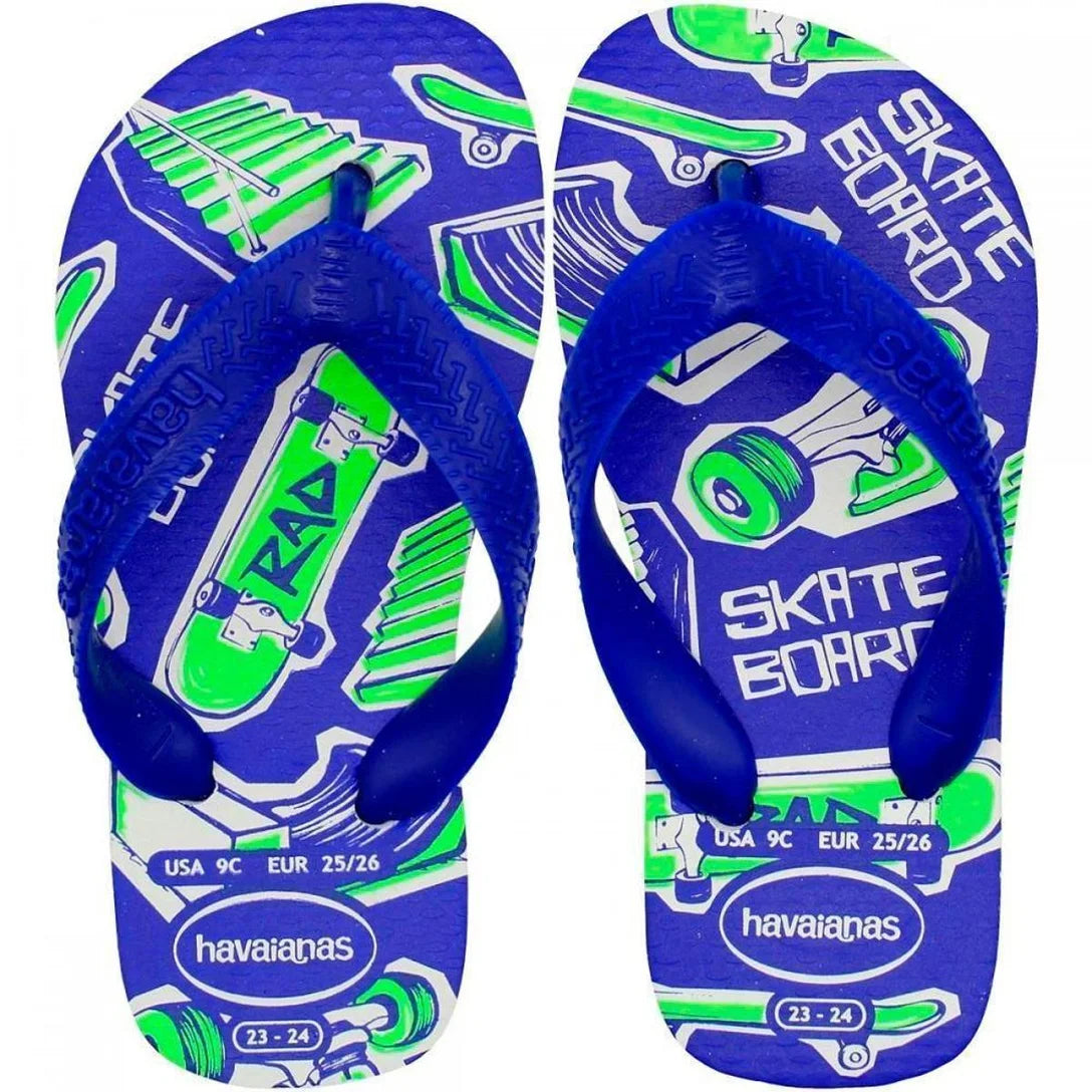 Havaianas Kids Athletic: chinelo infantil desenhado para jovens skatistas que exigem estilo e performance. Apresenta paleta de cores vibrantes que refletem a energia e criatividade do universo do skate. Fabricado com borracha de alta resistência, herança da tradição brasileira desde 1962, oferece durabilidade comprovada para suportar o uso intenso e as exigências do esporte. O design robusto e confortável acompanha cada sessão de manobras, garantindo segurança e liberdade de movimento para crianças ativas que vivem sobre o skate.